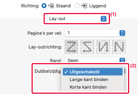 De pagina's worden zo afgedrukt dat deze aan de linker- of rechterzijde kunnen worden gebonden. |