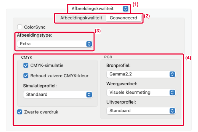 bij Afbeeldingstype, schakelt u het selectievakje [CMYK-simulatie] in