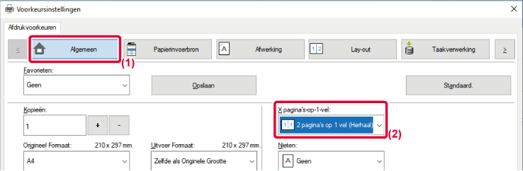 - Selecteer het aantal herhalingen bij 'X pagina's-op-1-vel'.