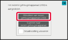 Tik op [Afdrukken van extern geheugenapparaat (USB)] als er een scherm wordt weergegeven waarin u een actie moet selecteren.