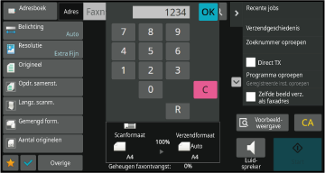 Tik op de toets [Directe Invoer] of de toets [Faxnummer] om het faxnummer van de bestemming in te voeren.