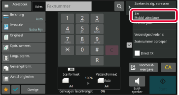 Tik in het basisscherm of het adresboekscherm op [Zie Mobiel adresboek] in het actiepaneel.