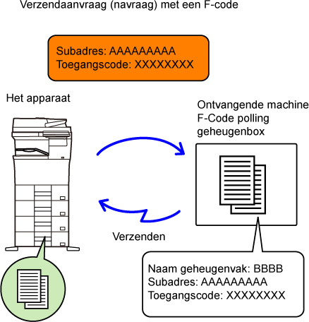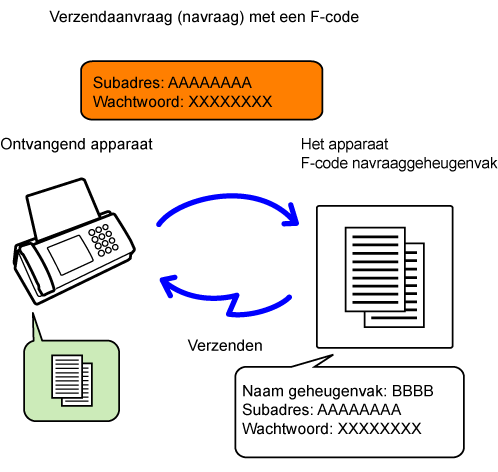 een fax die op het andere apparaat in een geheugenvak met F-code