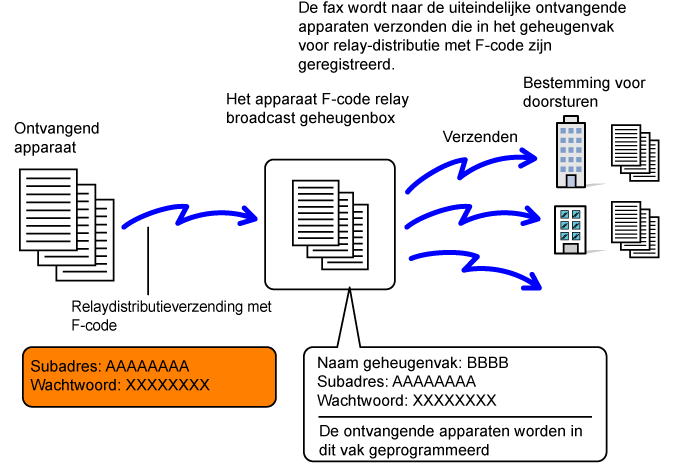 geheugenvak voor relaydistributieverzending met F-code op een ander