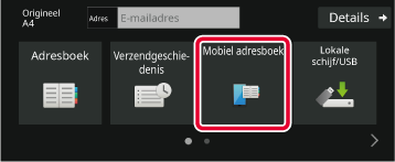 Tik in het basisscherm of het adresboekscherm op [Zie Mobiel adresboek] in het actiepaneel.