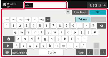 Gebruik het aanraaktoetsenbord dat wordt weergegeven om het bestemmingsadres in te voeren.