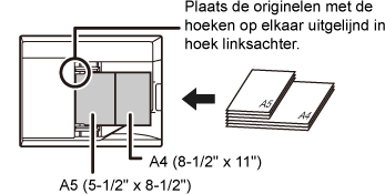 Plaats de originelen met de hoeken op elkaar uitgelijnd in de linkerachterhoek van de documentinvoerlade.