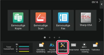 Het scherm van de instellingsmodus wordt op het aanraakscherm