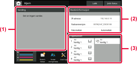 gjenværende papirmengde i maskinen vises. Trykk her for å gå til