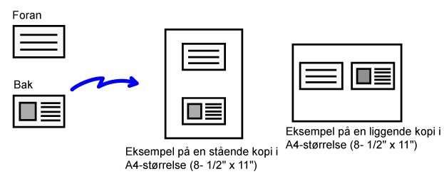 Legg et kort med forsiden opp på dokumentglasset, og trykk på [Farge Start]- eller [S/H Start]-tasten for å skanne baksiden.