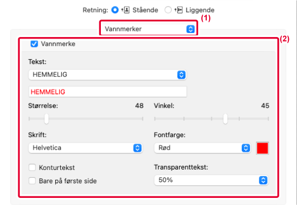 vannmerkeinnstillinger som for eksempel valg av tekst.