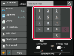 Trykk på talltastene for å angi destinasjonsnummeret direkte, eller søk etter og hent adresseboken eller nummeret.