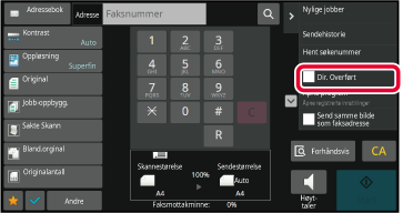 DOKUMENTGLASSAngi destinasjonens faksnummer og trykk på [Dir. Overført] på handlingspanelet.