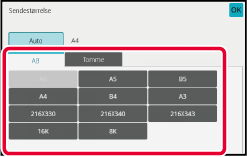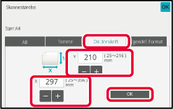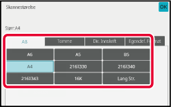 Trykk på [Skannestørelse]-tasten, etterfulgt av [Egendef.format]-fanen.