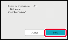 Du hører en pipelyd som indikerer at skanningen er ferdig.Når skanningen slutter, kontrollerer du antallet originalark og antallet ark som skal sendes, og trykker på [OK]-tasten for å starte overføringen.