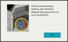 Gdy po podaniu kopert typ papieru zostanie zmieniony na inny niż koperty, wyświetlony zostanie poniższy komunikat. Przywróć dźwignię do pozycji normalnej.