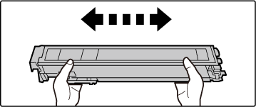 Wyjmij nową kasetę z tonerem z opakowania i potrząśnij nią pięć lub sześć razy, trzymając ją poziomo.