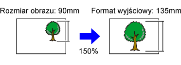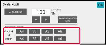 Skala pomniejszenia lub powiększenia jest wybierana automatycznie na stosownie do formatu oryginału i wybranego formatu papieru.