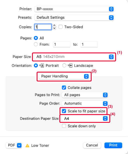 Paper" w "Destination Paper Size".