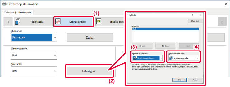 Jeżeli pole wyboru [Z nadrukiem] zostało zaznaczone