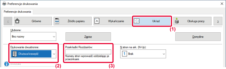 Jeśli dla ustawienia "Sposób drukowania" ustawiono opcję [Drukowanie dwustronne],