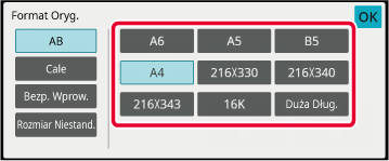 Naciśnij przycisk odpowiadający wymaganemu formatowi oryginału.