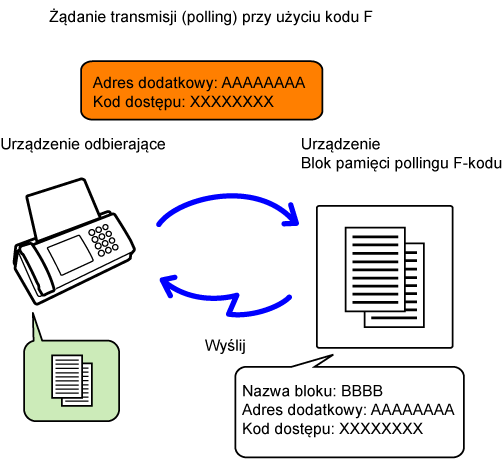 z użyciem kodu F faks jest przechowywany w bloku pamięci określonym przez