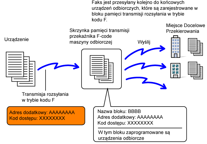 użytkownika, wysłanie faksu do urządzenia rozsyłającego, które znajduje