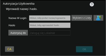 użytkownik musi zalogować się, aby skorzystać z urządzenia. Dostępne