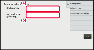 Naciśnij pole w sekcji [Nazwa kodu głównego], aby wprowadzić nazwę kodu głównego.