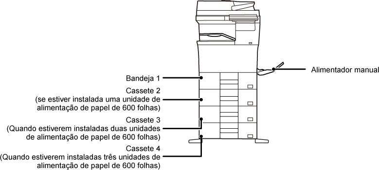 | Cassete | Em estado normal | Com papel carta ou pré-impresso colocado |