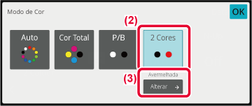 Depois de concluídas as definições, toque na tecla [OK]. Verifique se o modo de cor especificado está seleccionado.