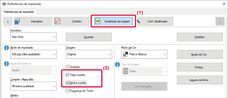 e o contraste nas definições de impressão quando é impressa uma