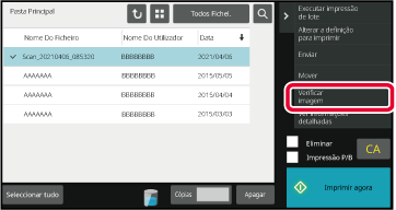 • Dependendo do tamanho da imagem, parte da imagem pode ser cortada no ecrã de verificação de imagem do painel de toque.