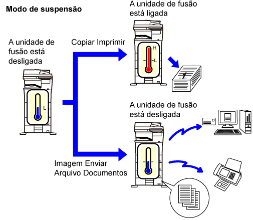 operações e da unidade de fusão, e faz a máquina aguardar no estado