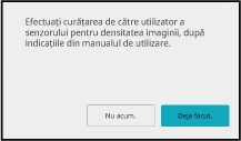 Atingeți tasta „Mai târziu” pentru a tipări; totuși, în cazul în care continuați să utilizați imprimanta cu un senzor de densitate a imaginii murdar, imaginea tipărită poate fi pătată.Opriți aparatul.