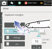 Atingere scurtă Atingeţi scurt panoul cu degetul şi apoi ridicaţi-l repede. Utilizaţi această metodă pentru a selecta o tastă, o filă sau o casetă de validare. |