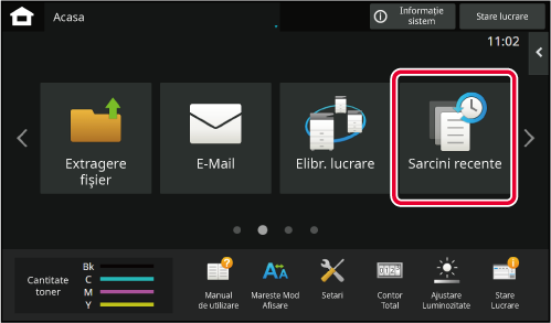 pe panoul tactil. Ecranul principal afişează tastele pentru selectarea