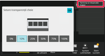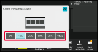 Setările sunt salvate în echipament şi aplicate.Puteți modifica transparența tastelor de