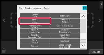 Setările sunt salvate în echipament şi aplicate.Puteți modifica poziția tastei [Ecran principal].