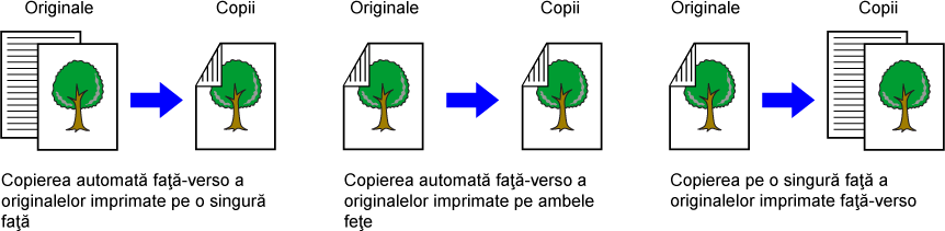 PROCEDURA DE BAZĂ PENTRU REALIZAREA COPIILORSelectaţi modul de copiere faţă-verso.