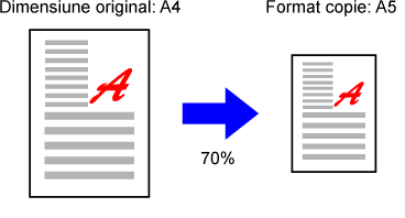 Reducerea sau mărirea raportului este selectată automat, pe baza formatului originalului şi a dimensiunii selectate a hârtiei.