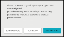 Repetaţi această operaţiune până ce au fost scanate toate originalele.Repetaţi până când toate paginile au fost scanate şi verificaţi imaginea de previzualizare din ecranul de previzualizare.