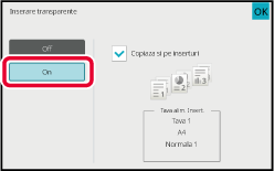 Atunci când realizaţi o copie pe coli de inserţie, atingeţi scurt caseta de selecţie [Copiaza si pe inserturi] pentru a seta la