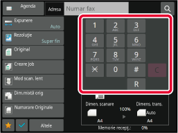 Atingeți scurt tastele numerice pentru a introduce direct numărul de destinație sau căutați şi recuperați agenda sau numărul.