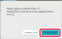 Repetaţi operaţia până la scanarea tuturor originalelor.Atingeți tasta [Termin. Scan.].