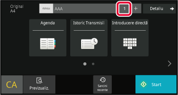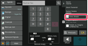 ALIMENTATORUL AUTOMAT DE DOCUMENTESpecificați numărul de fax de destinație şi atingeţi scurt [Trans. Directă] de pe panoul de acţiuni.