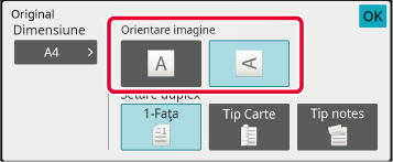 Atingeţi scurt tasta [Orientare imagine] cu aceeaşi orientare ca originalul introdus.