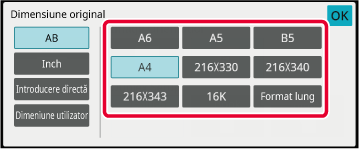 Atingeți o tastă pentru dimensiunea de original dorită.