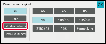 Apăsaţi pe tasta [Introducere directă] şi apoi introduceţi formatul de scanare.